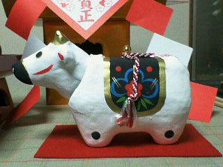 このおみくじでは毎回干支のぬいぐるみもらってたんですが(←確率としては一番もらいやすい)、今回はこちらの置物で。っていうか牛のぬいぐるみ可愛くなかt