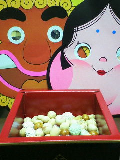 外に豆放るのは母がやりました。豆はたぶん鳥かうちのワンコが食べると思う。